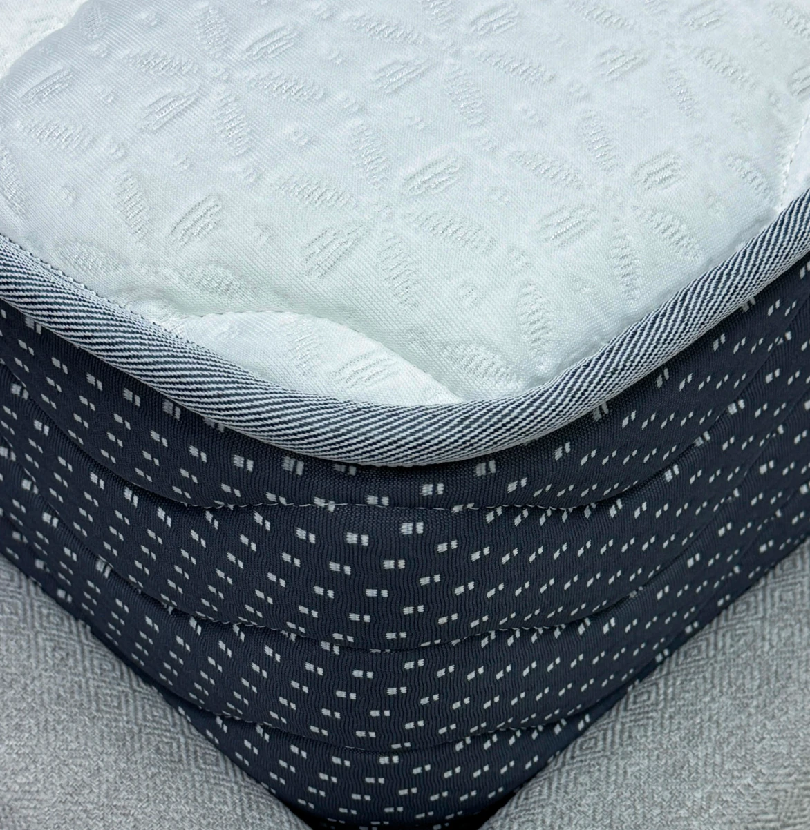 Короб из ППУ усиливает жесткость конструкции пружинных моделей по краям матраса, предотвращая их проседание при регулярной нагрузке. Это особенно важно при локальных нагрузках на борт матраса при посадке и подъеме с матраса. В наших моделях используются два вида пен - стандартной марки у изголовья и повышенной плотности в боковых зонах.