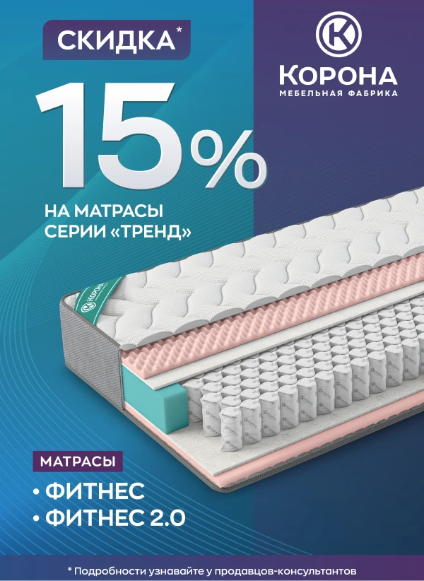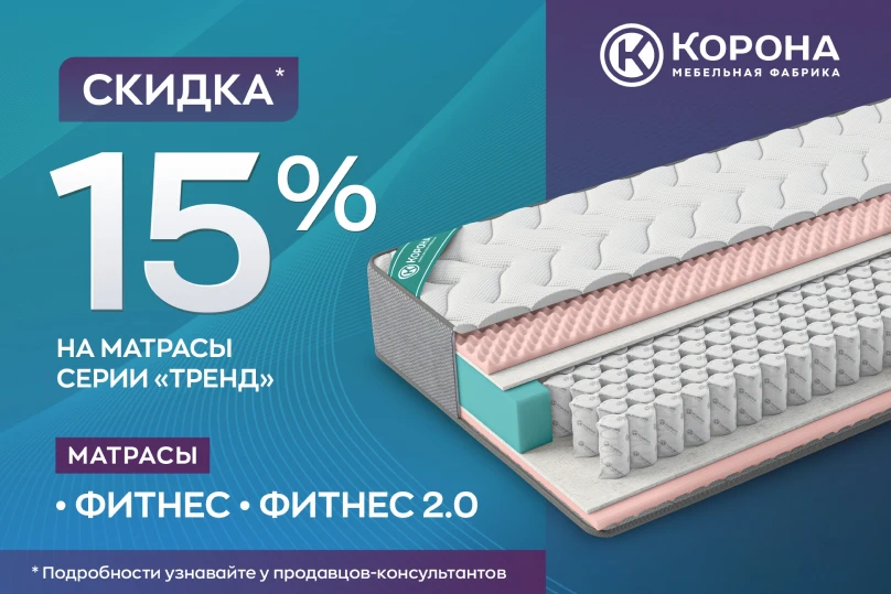 Скидка 15% на профессиональные матрасы для здорового сна серии «Тренд»: